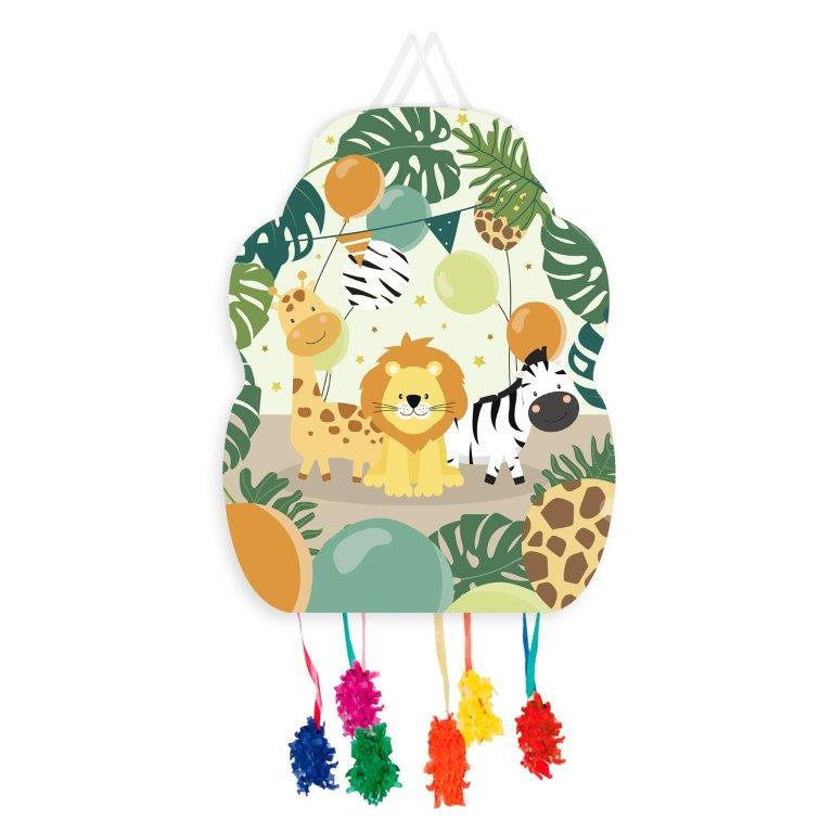 Pinhata perfil com saco para festa de aniversário do tema Safari Selva. Inclui 1 pinhata de puxar com medidas 33x46cm.