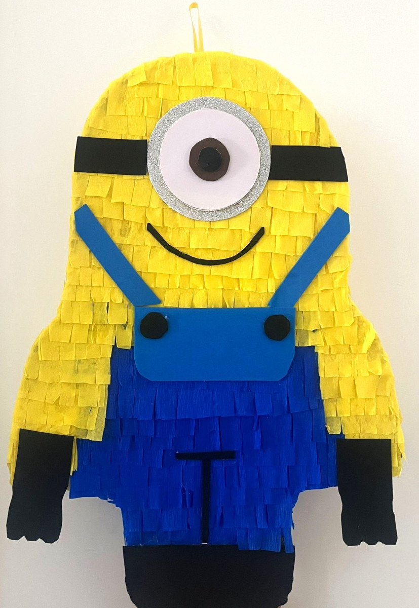 Pinhata artesanal com a forma de Minion com as dimensões de 43x30x10cm.
