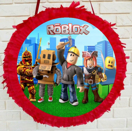 Pinhata Roblox com as dimensões aproximadas de 36cm de diâmetro por 10 de largura. O complemento ideal para a tua festa de aniversário onde podes colocar doces, brindes e muito mais.