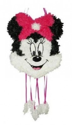 Pinhata da Minnie Mouse, para te divertires na tua festa de aniversário, com acabamento de papel acetinado sobre uma base de papelão leve e cordas suficientes para aproximadamente 6 jogadores.