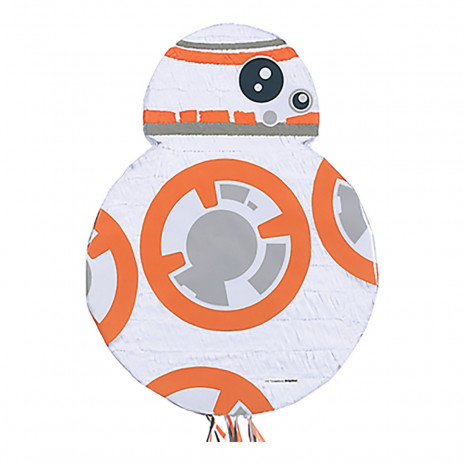 Pinhata da personagem BB8 do Star Wars para colocar doces e pequenos presentes em festas de aniversário com o tema da saga dos Star Wars. Com cerca de 24 fitas para puxar ou também pode bater com o bastão. Poderá comprar o bastão e a venda à parte.