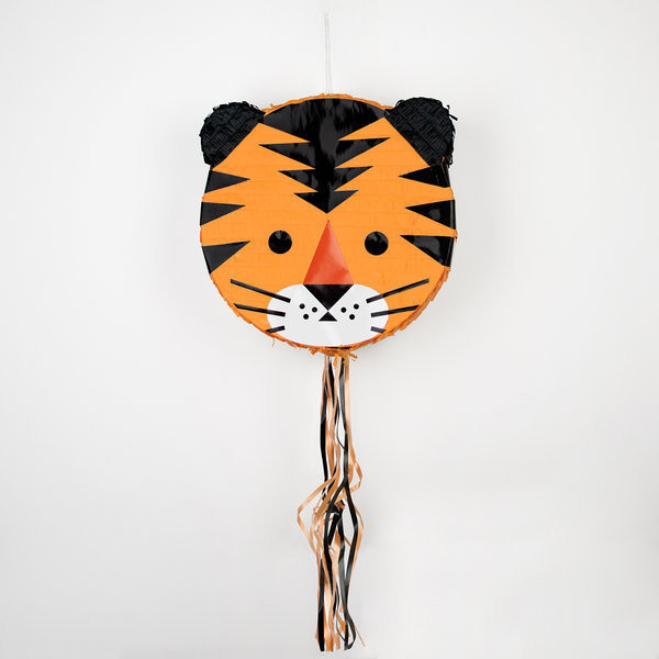 Pinhata de Tigre para as festas de aniversários dos animais da selva, para colocar doces e os brindes. Inclui uma caixa interior para colocação de doces ou brindes que cairão ao ser puxada a fita certa, ou se preferir pode partir com um bastão.