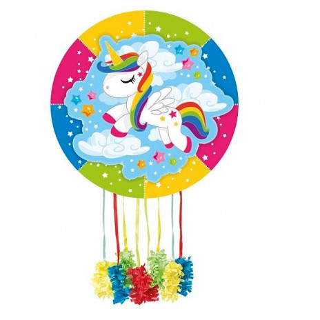 Pinhata Unicórnio,para te divertires na tua festa de aniversário, com acabamento de papel acetinado sobre uma base de papelão leve e cordas suficientes para aproximadamente 8 jogadores.