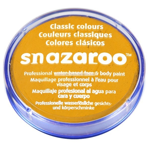 Pintura facial profissional à base de água para cara e corpo da marca lider mundial Snazaroo.Cor: Ocre (conhecido por amarelo torrado). Capacidade: 18ml.