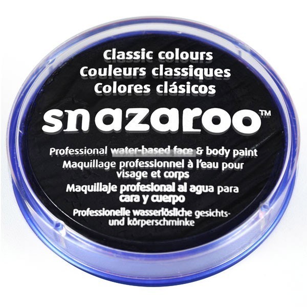 Pintura facial profissional à base de água para cara e corpo da marca lider mundial Snazaroo. Cor: Preto. Capacidade: 18ml.