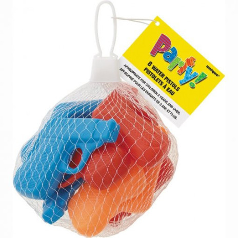 Pistolas de água coloridas ideal para brindes de aniversário em várias cores.