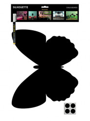Quadro de parede em forma de borboleta cortado com precisão numa superfície de escrita bilateral resistente mas flexível. Inclui marcador e tiras de velcro para aderir à parede.