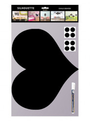 Quadro de parede em forma de coração cortado com precisão numa superfície de escrita bilateral resistente mas flexível. Inclui marcador e tiras de velcro para aderir à parede.