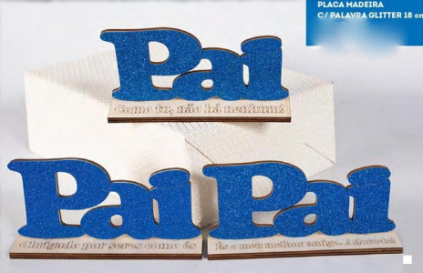 Para oferecer no dia do pai, uma placa em madeira com glitter, disponível com várias frases.