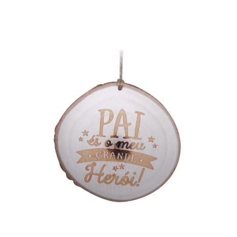 Para oferecer no dia do pai, uma placa em madeira redonda para decoração com a inscrição "Pai És o Meu Grande Herói".