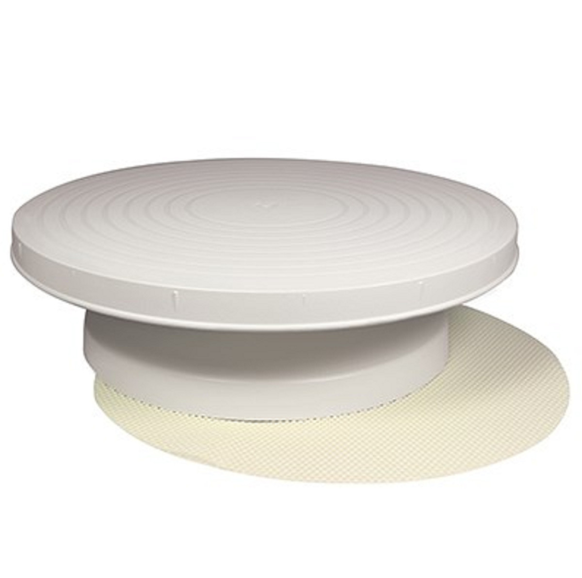 Inclui um tapete circular antiderrapante para evitar que os seus bolos deslizem ao utilizar com bases e discos de bolo.