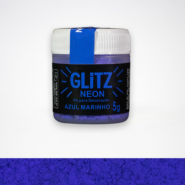 O Glitz Neon Azul Marinho é ideal para dar acabamento e revestimento em bolos, chantilly, pastas americanas e muito mais! O Pó neon tem uma cor vibrante com um efeito neon que brilha na luz negra.