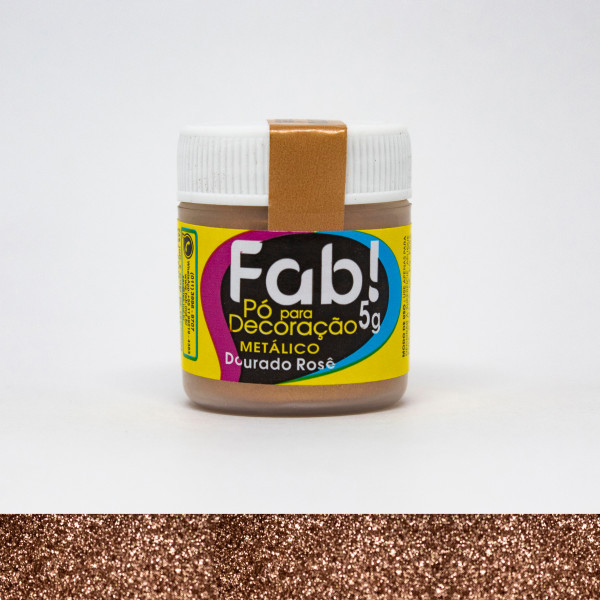 O pó para decoração dourado rosé faz parte da linha de metálicos da Fab! conhecido pelas confeiteiras como o verdadeiro dourado gold, pois o seu efeito traz um ar de riqueza para os seus bolos, doces, etc. A cor é bastante solicitada em decoração de festas de casamento. Pode ser aplicado a seco em camadas e superfícies finas, com auxílio dum pincel de cerdas macias. Também pode ser diluído na Solução Alcoólica Neutra da Fab! (desenvolvida especialmente para esse tipo de uso) e utilizada na bombinha ou aerógrafo. É indicado para decorar superfícies finas como chantilly, chantininho, pasta americana, pasta de açúcar, pasta de flores, pasta de feijão, chocolate, biscoitos, glacê real, macarons.