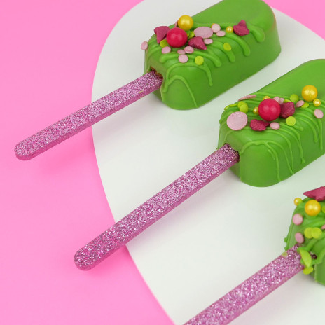 Perfeitos para usar em cakesicles, gelados, chupa-chupas, pirulitos de chocolate, marshmallows, fruta, sobremesas, bolos, entre outras.
