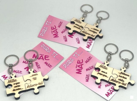 Para oferecer no dia da mãe, um porta chaves duplo em madeira em peça de puzzle com várias frases disponíveis.