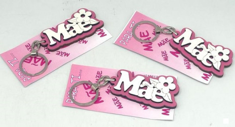 Para oferecer no dia da mãe, um porta chaves em madeira com a palavra mãe.