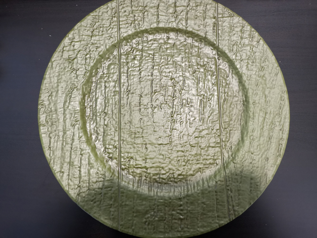 Prato redondo marcador para decorar qualquer mesa de refeição em tons de verde/castanho, como uma folha.