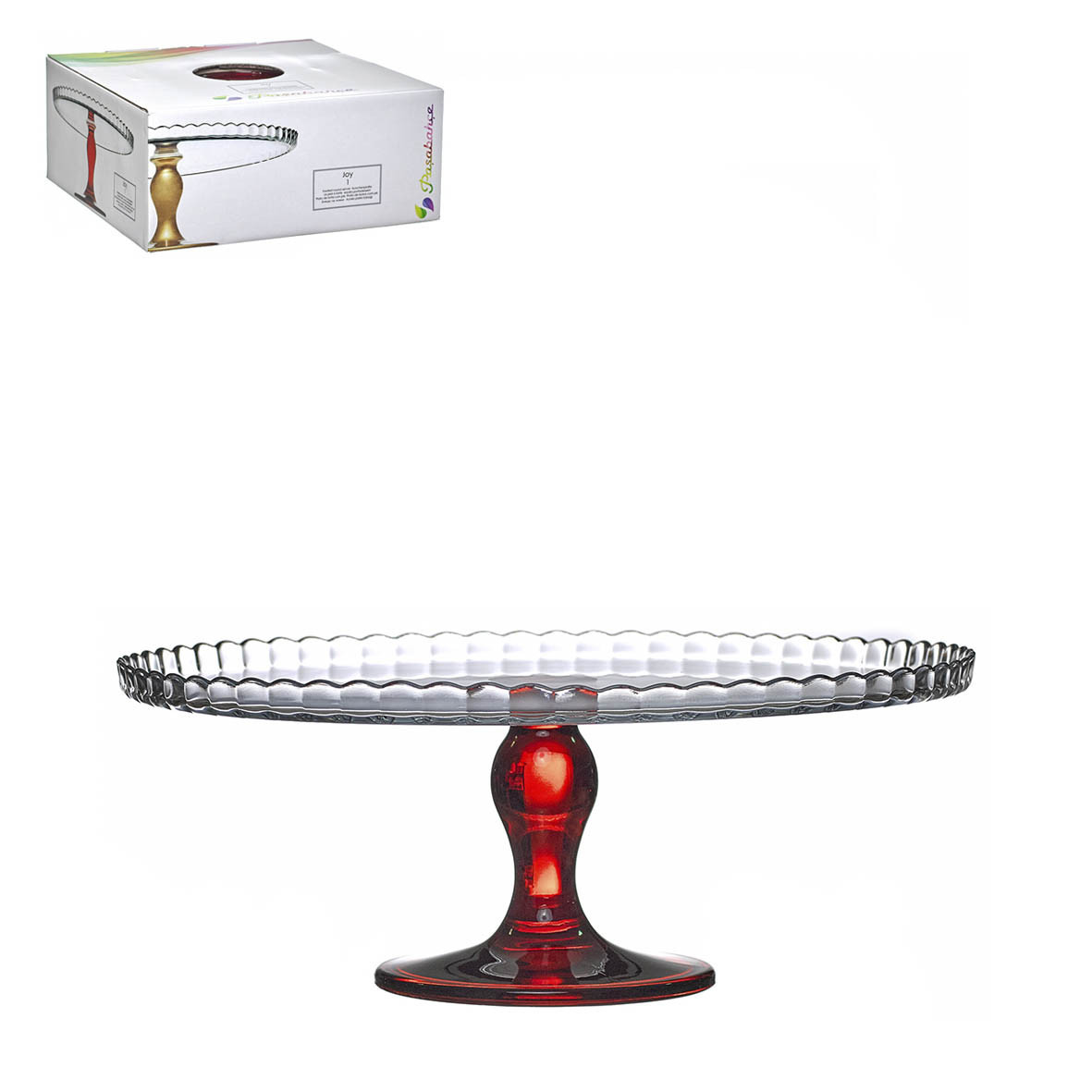 Prato de patisserie com pé em vermelho para decoração ou para festas com cerca de 32cm de diâmetro e 13cm de altura.
