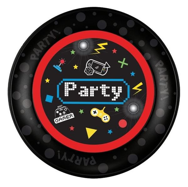 Prato de plástico para as tuas refeições ou festas de gaming. É reutilizável. Pode ir à máquina de lavar e ao microondas.