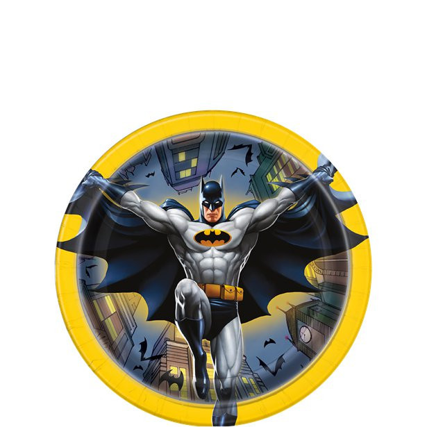 Pratos 17.1 cm de diâmetro com ilustração do Batman, para tornar a tua festa de aniversário ainda mais divertida.