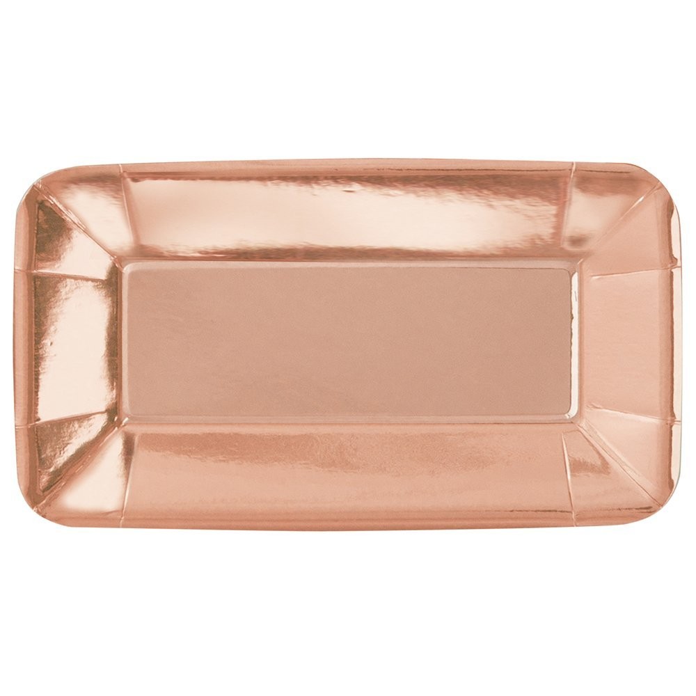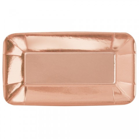 Pratos Aperitivos Rose Gold Rectangulares – 8 Und