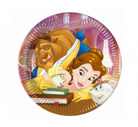Pack de 8 pratos do filme A Bela e o Monstro de 20cm. Ideal para a tua festinha de aniversário.