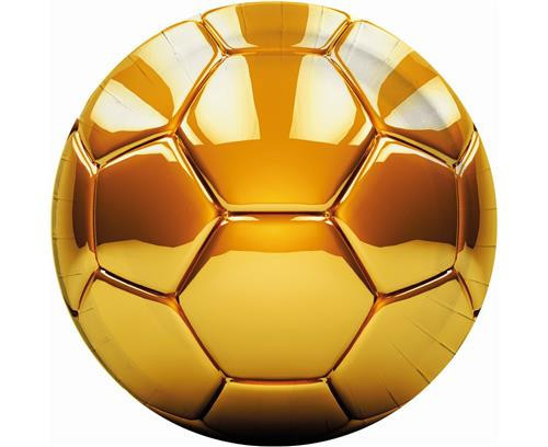 8 pratos Festa grandes de 23cm, descartáveis, do tema Futebol de Ouro, para as tuas festas serem ainda mais alegres.