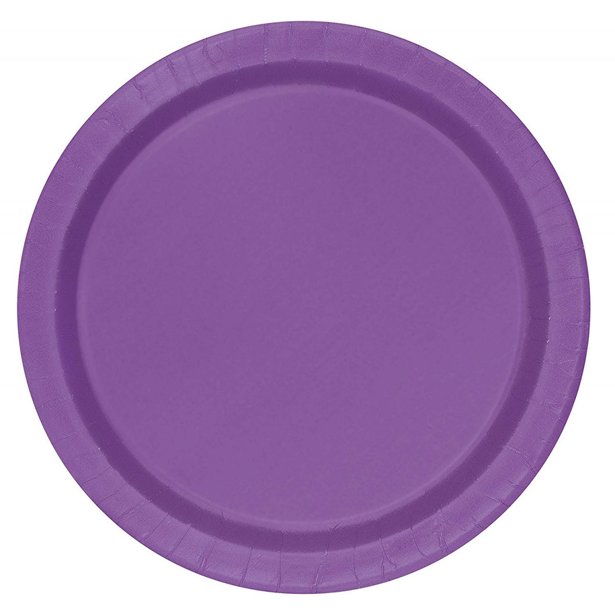 Conjunto de dezasseis pratos descartáveis Lilás ideais para decorar a sua mesa em festas de aniversário ou eventos.