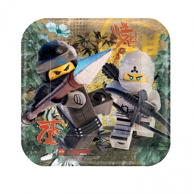 Conjunto de 8 pratos de formato quadrado, de cartão da nova colecção Ninjago Lego, de 17,8cm