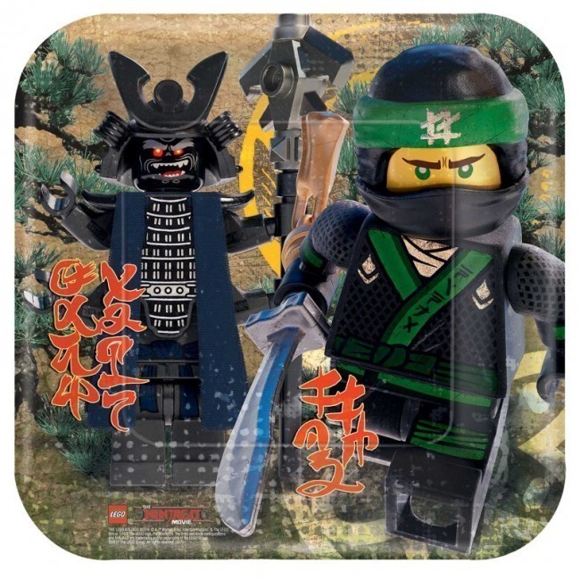 Conjunto de 8 pratos de formato quadrado, de cartão da nova colecção Ninjago Lego, de 22.9cm
