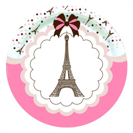 Pack de 8 unidades desta impressionante colecção de pratos de papel descartável, que será com toda a certeza um sucesso na tua/sua festa de aniversário ou temática com o tema Parisiense. Dimensão: 22,2cm