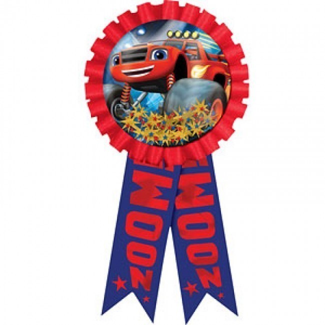 Este acessório com adesivo tem uma colorida imagem do Blaze no fundo preenchida com confetis.