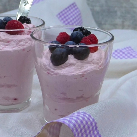 Preparado em pó para elaboração de mousse de frutos silvestres.
