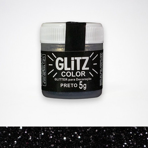 O Glitz Color Preto tem uma cor extremamente forte, dando um efeito luxuoso e refinado de preto com brilho. Ideal para quem procura um efeito glow com muito brilho.