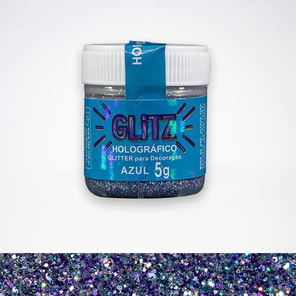 De criação exclusiva e inédita da Fab!, o Glitz Holográfico Azul é conhecido como o glitter 3D, este efeito que imita o fenómeno que acontece nos nossos olhos, como um cristal que reflete diversas cores ao ser atingido pela luz do sol. Dependendo do ângulo, muda a cor, dando a impressão de arco-íris, neste caso, em diversas tonalidades e matizes de azul.