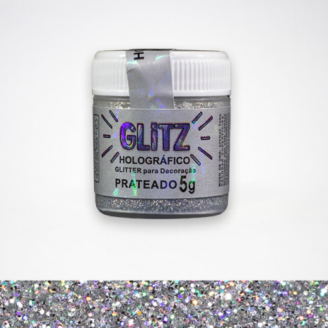 O Glitz Holográfico Prateado é conhecido como o glitter 3D, este efeito que imita o fenómeno que acontece nos nossos olhos, como um cristal que reflete diversas cores ao ser atingido pela luz do sol. Dependendo do ângulo ele, muda a cor, dando a impressão de arco-íris, que no caso fornece matizes da cor prateada.