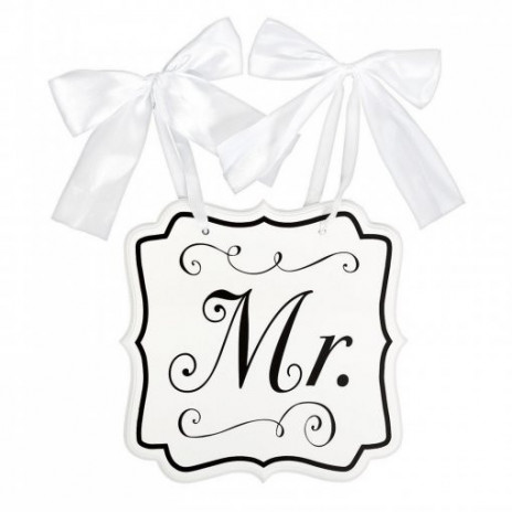 Uma placa em mdf para marcar o lugar e/ou sinalizar no dia do seu casamento em branco com a inscrição Mr. Inclui lacinhos para prender à cadeira.