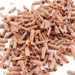 Designação Técnica Chocolate puro com leite em forma de pequenas raspas enroladas, entre 9 a 12mm, com 27% de cacau, de sabor caracteristico.