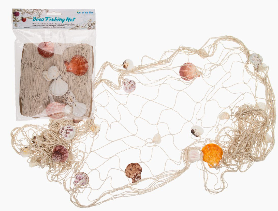 Rede de pesca com conchas do mar para decoração de festas e outros eventos. Ideal para festa do mar, de sereias, entre outras.