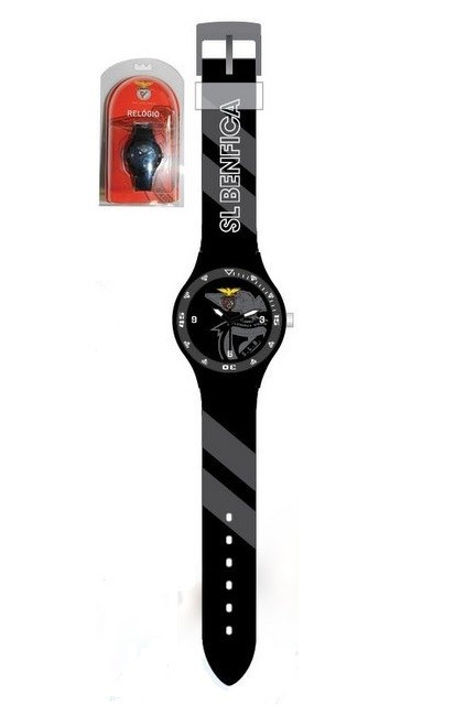 Relógio de pulso em preto e cinza, do clube do Benfica