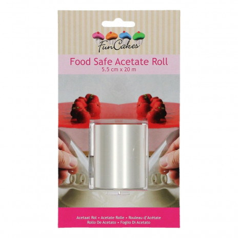 O rolo de acetato da FunCakes é uma folha de acetato segura para alimentos, adequada para trabalhar com chocolate e fazer, por exemplo, bavarois e cheesecakes. A folha é fácil de cortar para vários fins.