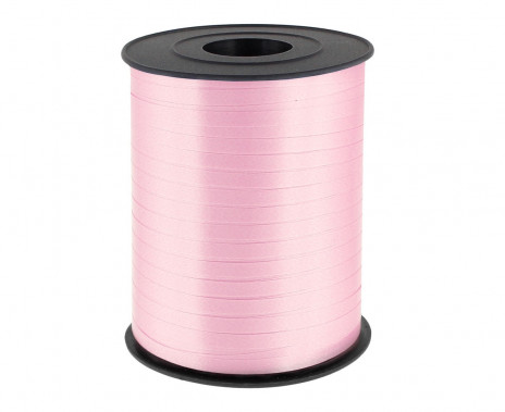 Fita para balões em rolo de cor rosa com as medidas 5mmx500m.