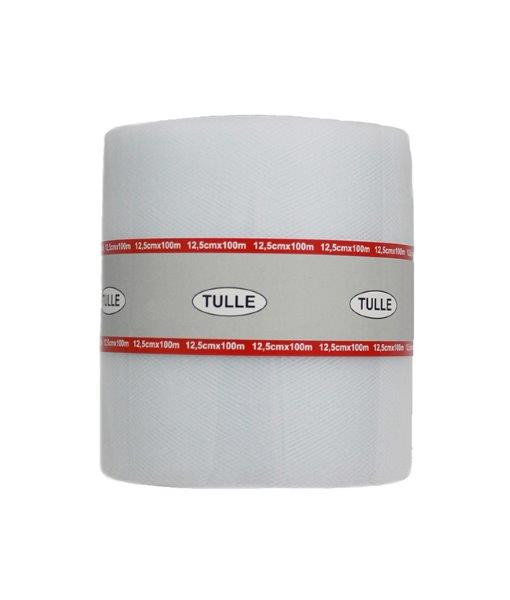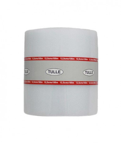 Um enorme rolo de tule em branco para usar para decorações para qualquer tipo de festa ou evento.