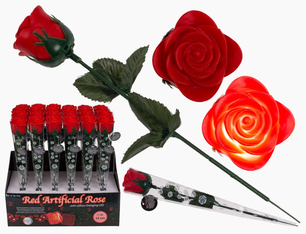 Rosa artificial de plástico de cor vermelha com luz led que muda de cor para oferecer à sua cara metade numa data especial ou no dia dos namorados.