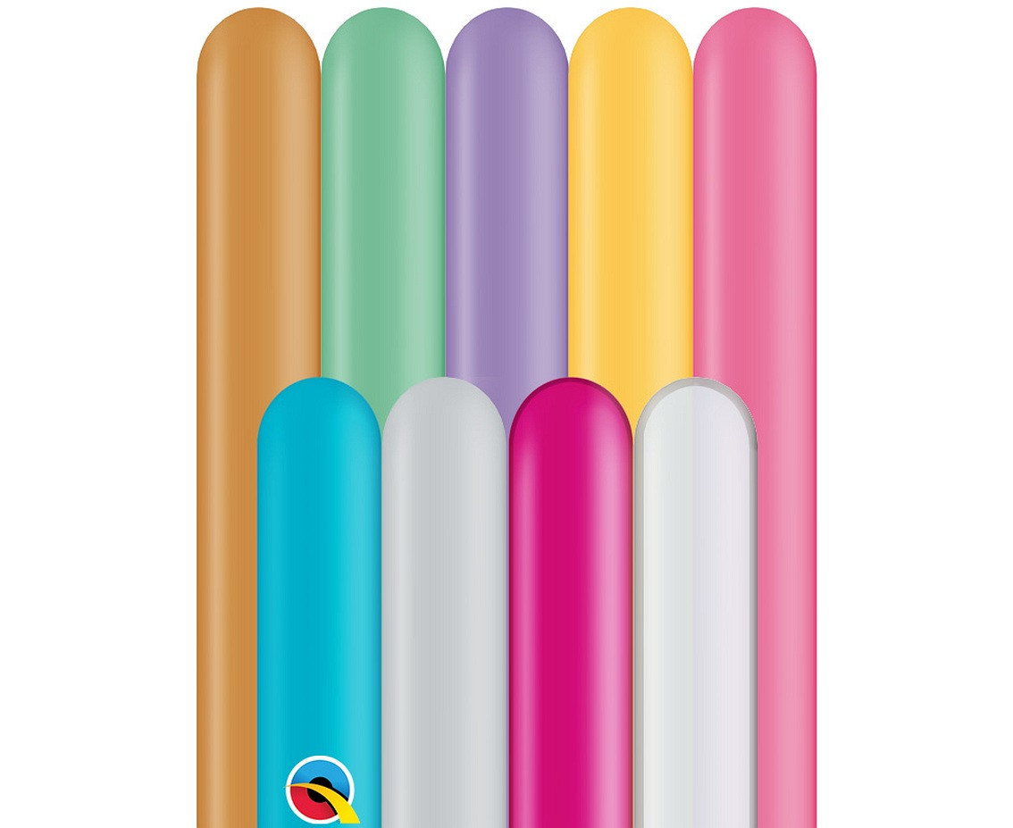 Saco de 250 balões de modelar da Qualatex (qualidade profissional) em tons pastel.