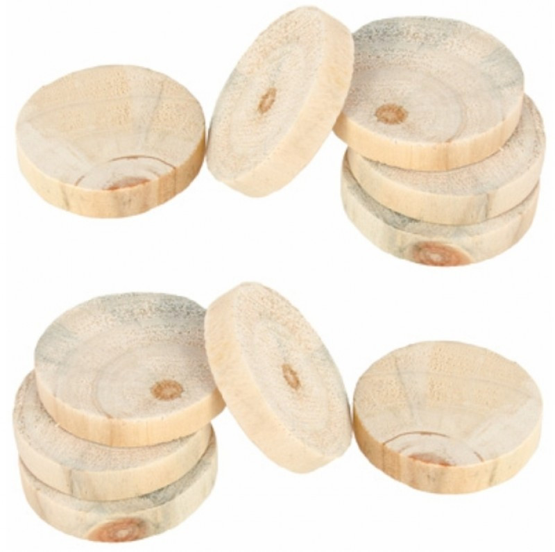 Saco de 250g de bases de madeira natural com 6cm para decoração de mesa, marcação de lugar, suporte de talheres. Para temas como a natureza, marinho, floresta, entre outros.