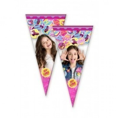 Saco em formato cone com a imagem da Sou Luna para colocação de brindes das festas de aniversário.