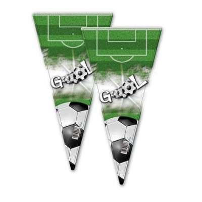 Saquinho em cone do tema Futebol para brindares os teus amiguinhos na tua festa de aniversário com doces ou brindes. Dimensões: 20x40cm.