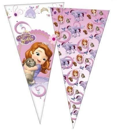 Se tiveres uma pinhata na tua festa de aniversário, ou simplesmente para oferecer doces e surpresas aos teus convidados tens que ter estes lindos sacos cone da Princesa Sofia.