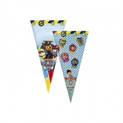 Saquinho formato cone com a imagem dos cãezinhos da série Paw Patrol para colocação de brindes e docinhos nas festas de aniversário. Vendidos individualmente.Dimensões: 20x40cm.